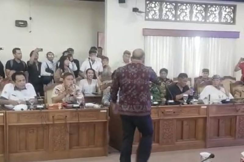 Kemudian beberapa orang juga ikut berkata – kata kasar, teriak teriak berrujar umpatan. PT Jimbaran Hijau meninggalkan tempat setelah izin ke Ketua Pansus TRAP DPRD Bali. namun sempat juga Sekretaris Pansus TRAP Dewa Rai Adi membentak yang berkata kata kasar itu untuk diam. “Tolong diam yaa, jangan kayak gitu,” bentak Dewa Rai dengan nada tinggi.